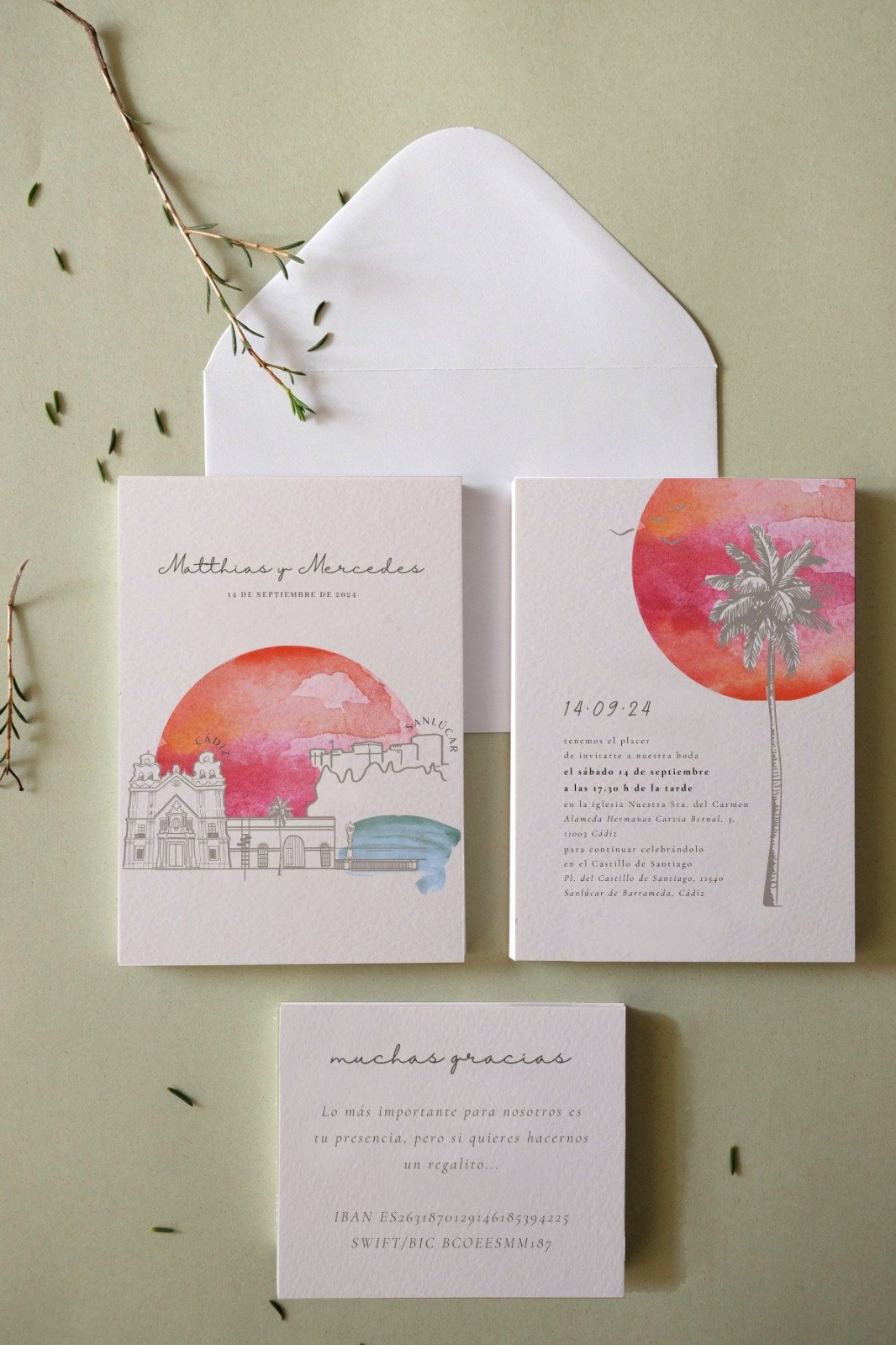 Foto: Lembrete (boda de Mercedes & Matthias). Invitación en papel y digital.